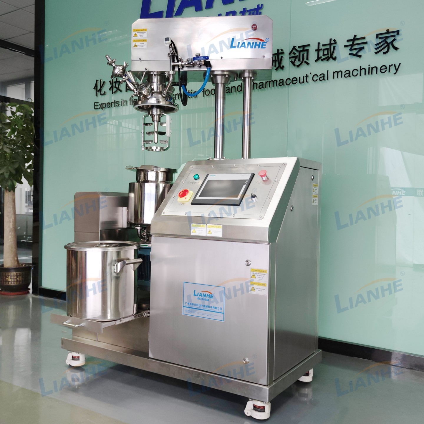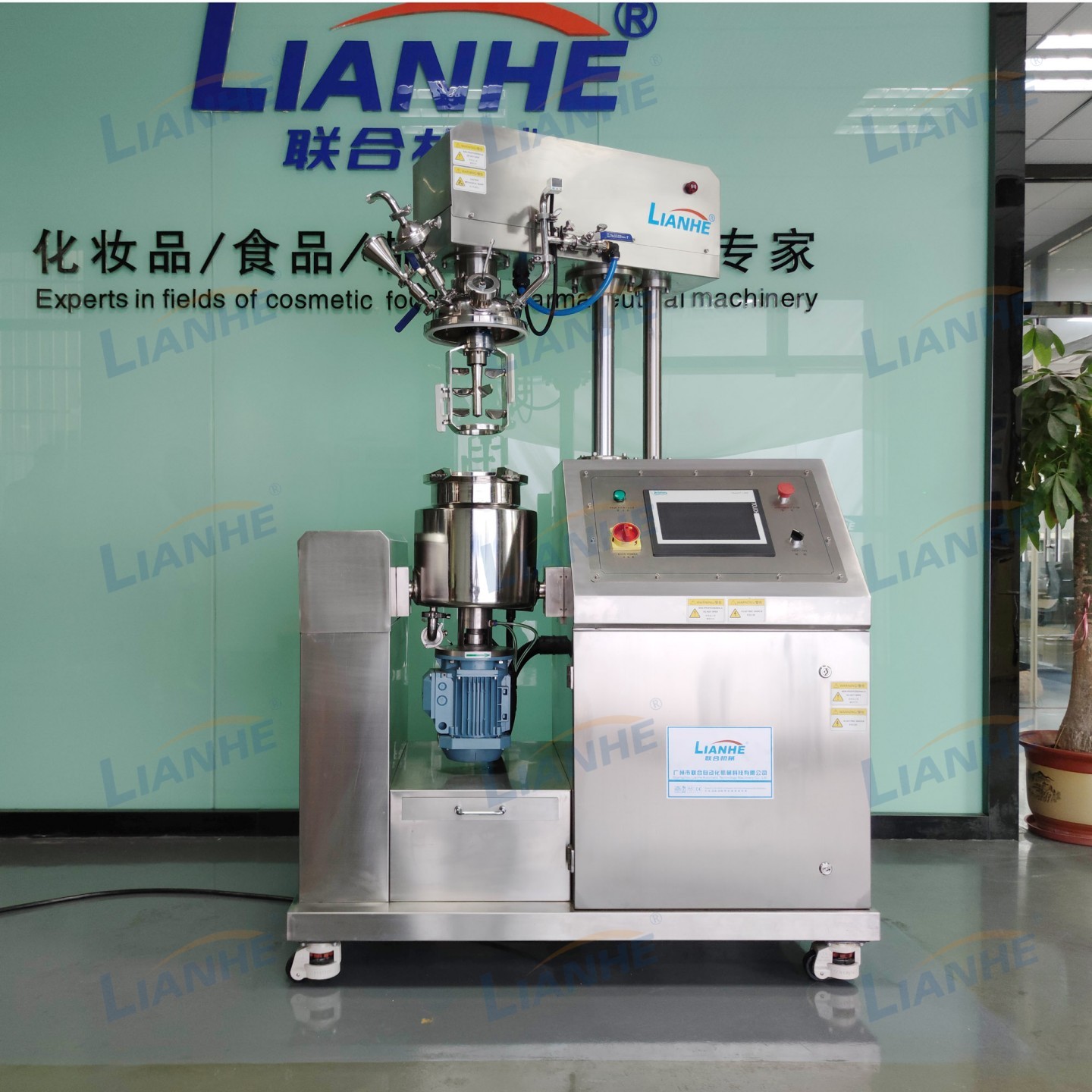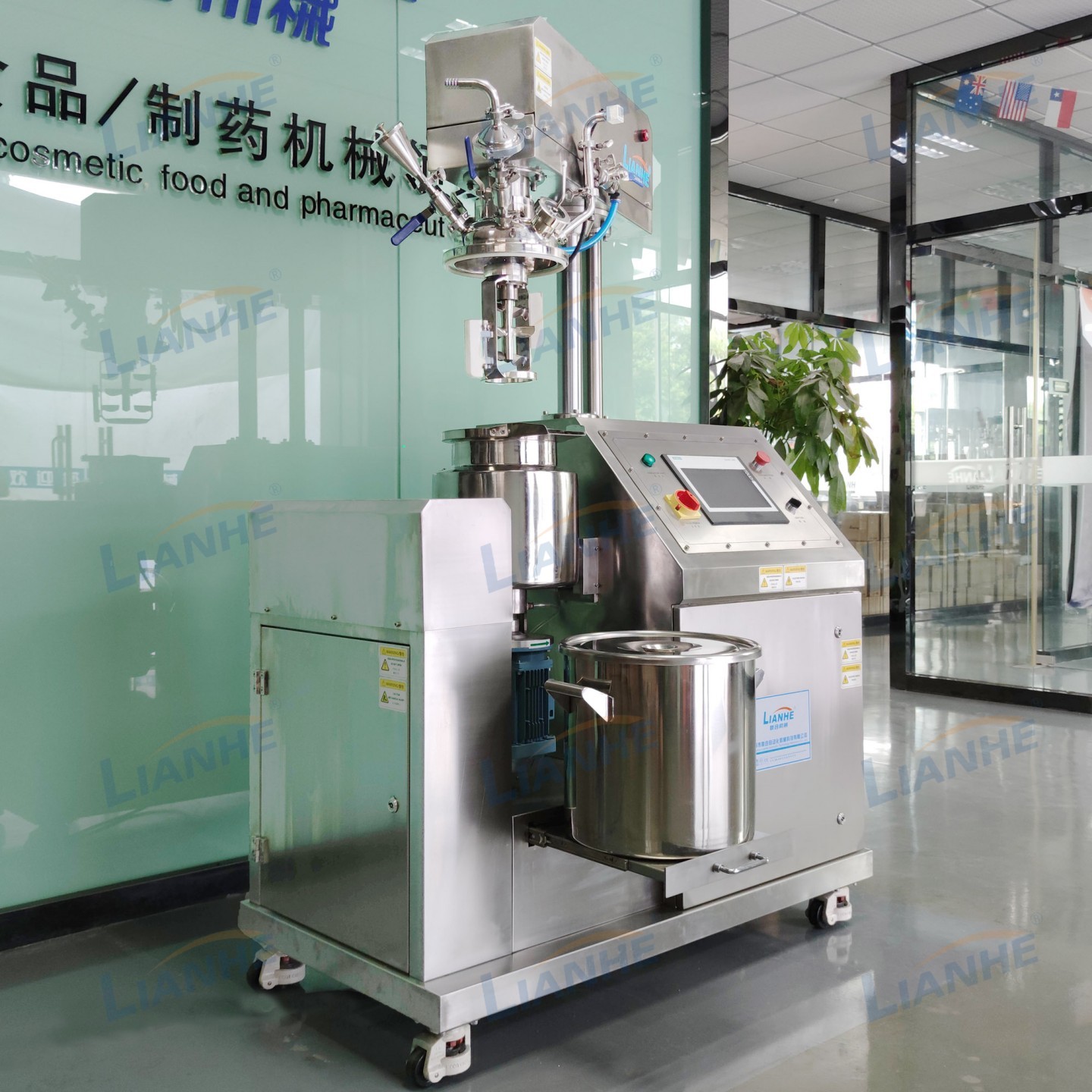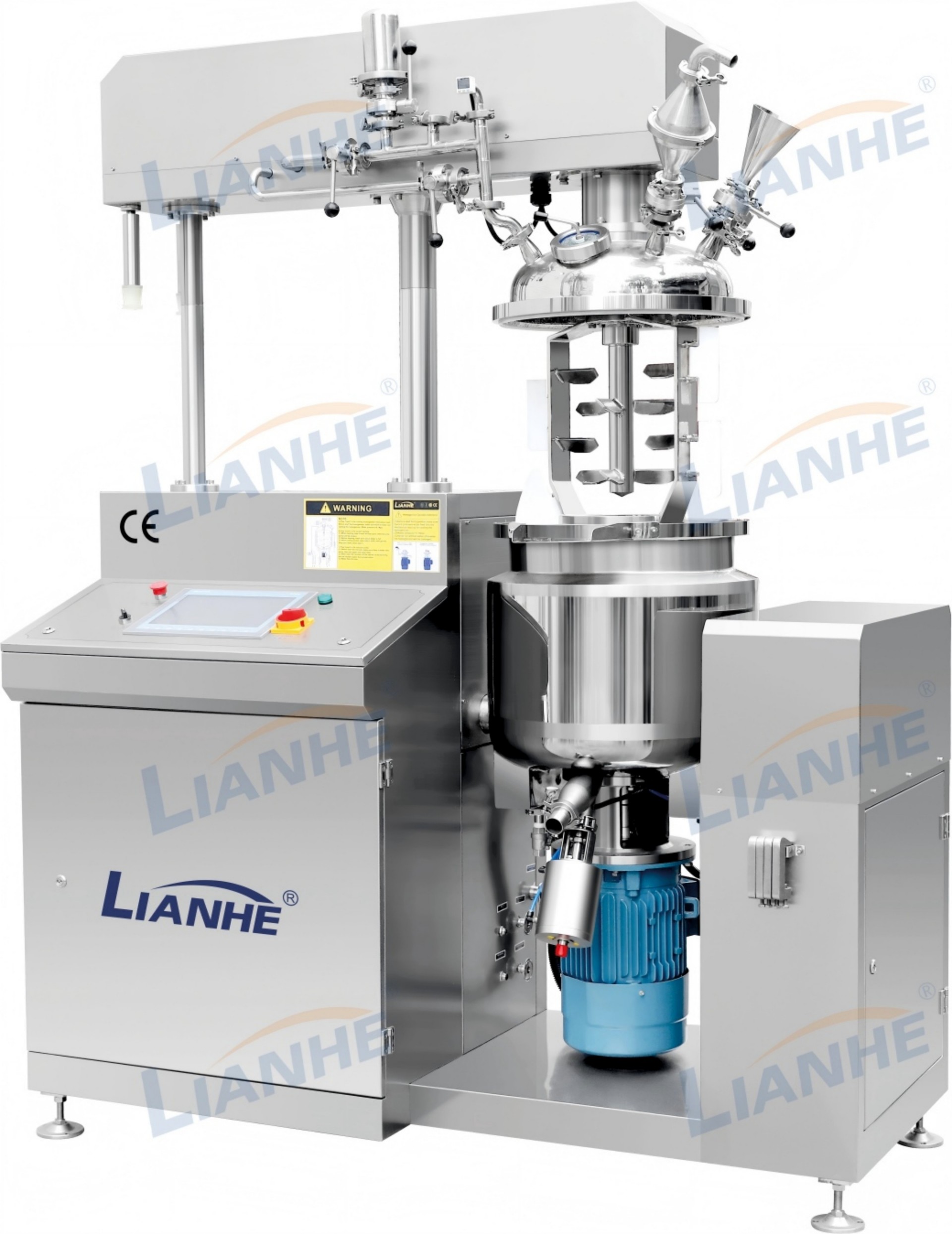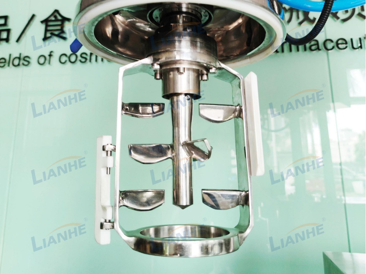 該設(shè)備由乳化攪拌罐、液壓升降系統(tǒng)、控制系統(tǒng)、均質(zhì)器、攪拌系統(tǒng)及真空系統(tǒng)構(gòu)成。在真空環(huán)境下,通過高剪切乳化機(jī)實(shí)現(xiàn)多相物料的高速均勻分散。物料在轉(zhuǎn)子與定子構(gòu)成的狹小空間內(nèi),借助設(shè)備產(chǎn)生的強(qiáng)大動(dòng)能,經(jīng)受液壓剪切、離心擠壓、沖擊破碎及湍流等多重作用,實(shí)現(xiàn)瞬時(shí)均勻分散乳化。經(jīng)高頻往復(fù)循環(huán)處理后,最終獲得穩(wěn)定性優(yōu)異且無(wú)氣泡的高品質(zhì)成品。